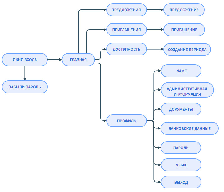Продумали основные экраны и граф переходов между ними: